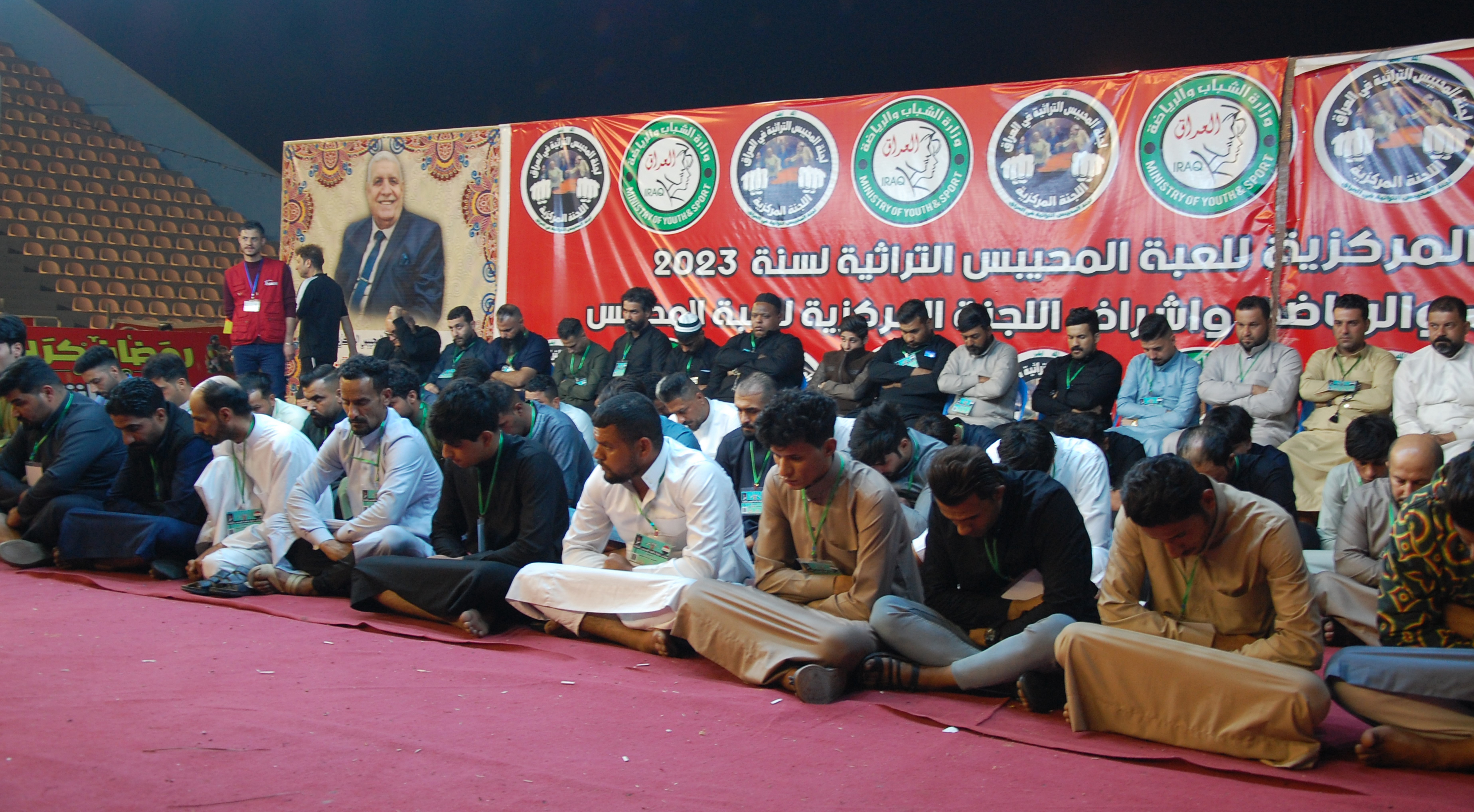 Title EN: One of the local teams for the traditional game of Al Muhaibis starts the competition after hiding Al-Mahbas (the ring) in the hand of one of its members which sit quietly in front of the opposing team