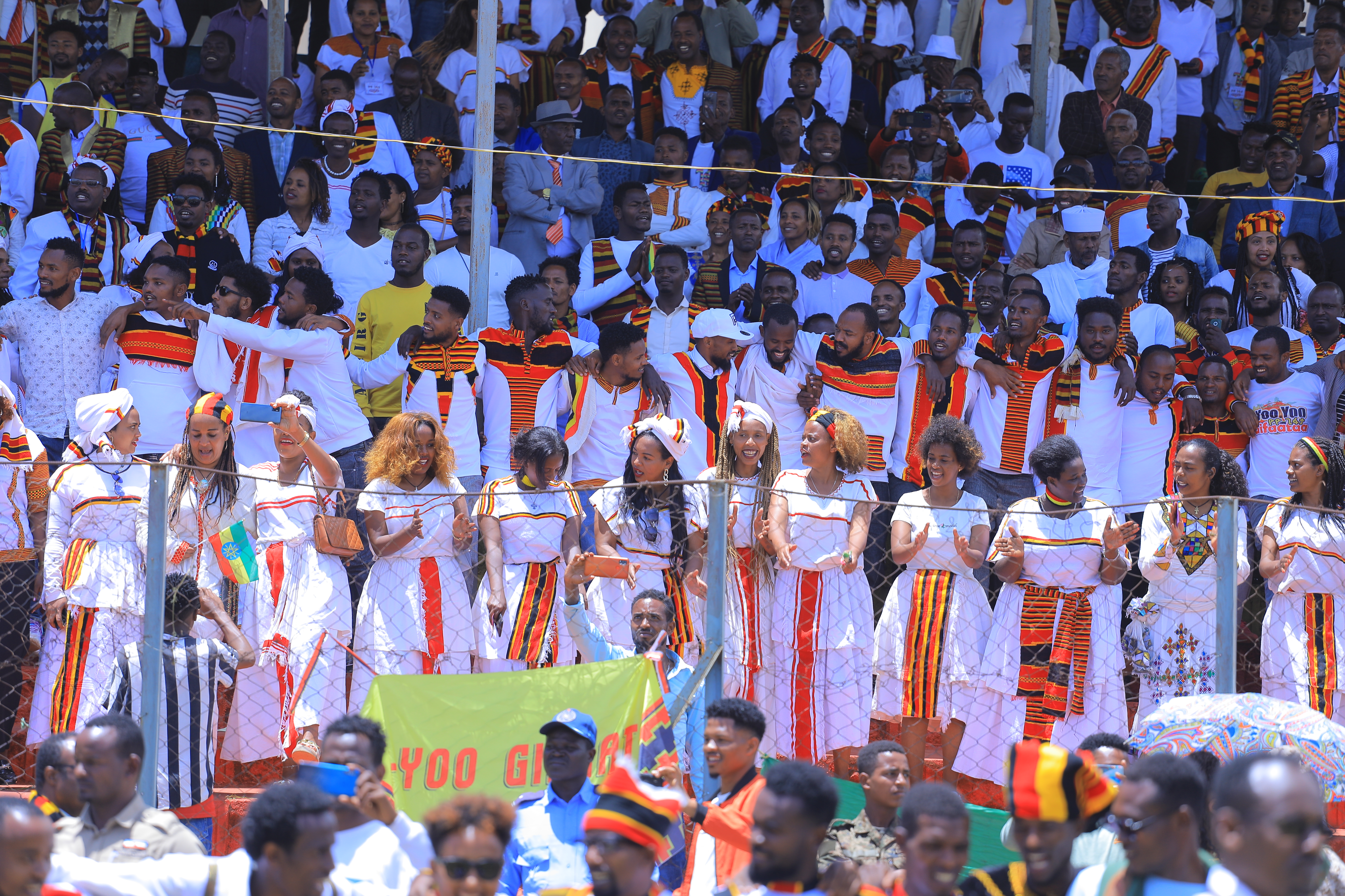 Title EN: Traditional costumes: Wolaita women and men wearing their traditional dresses in the Gifaataa festival.