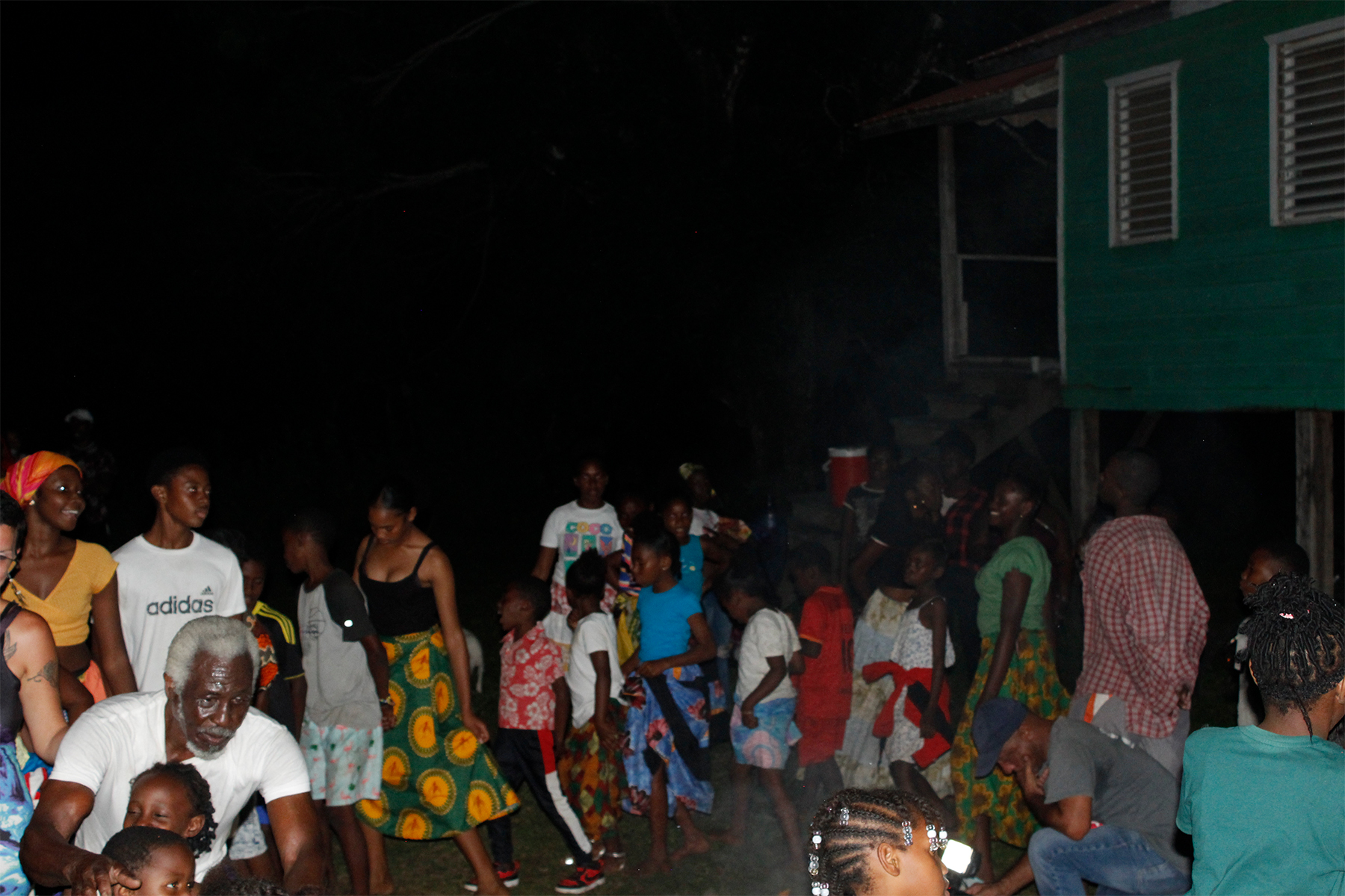 Title EN: This image highlights the participation of the community in the Kunjai. The performance of the Kunjai evokes a sense of unity within the community as it is a circle dance with members of the community from all ages.