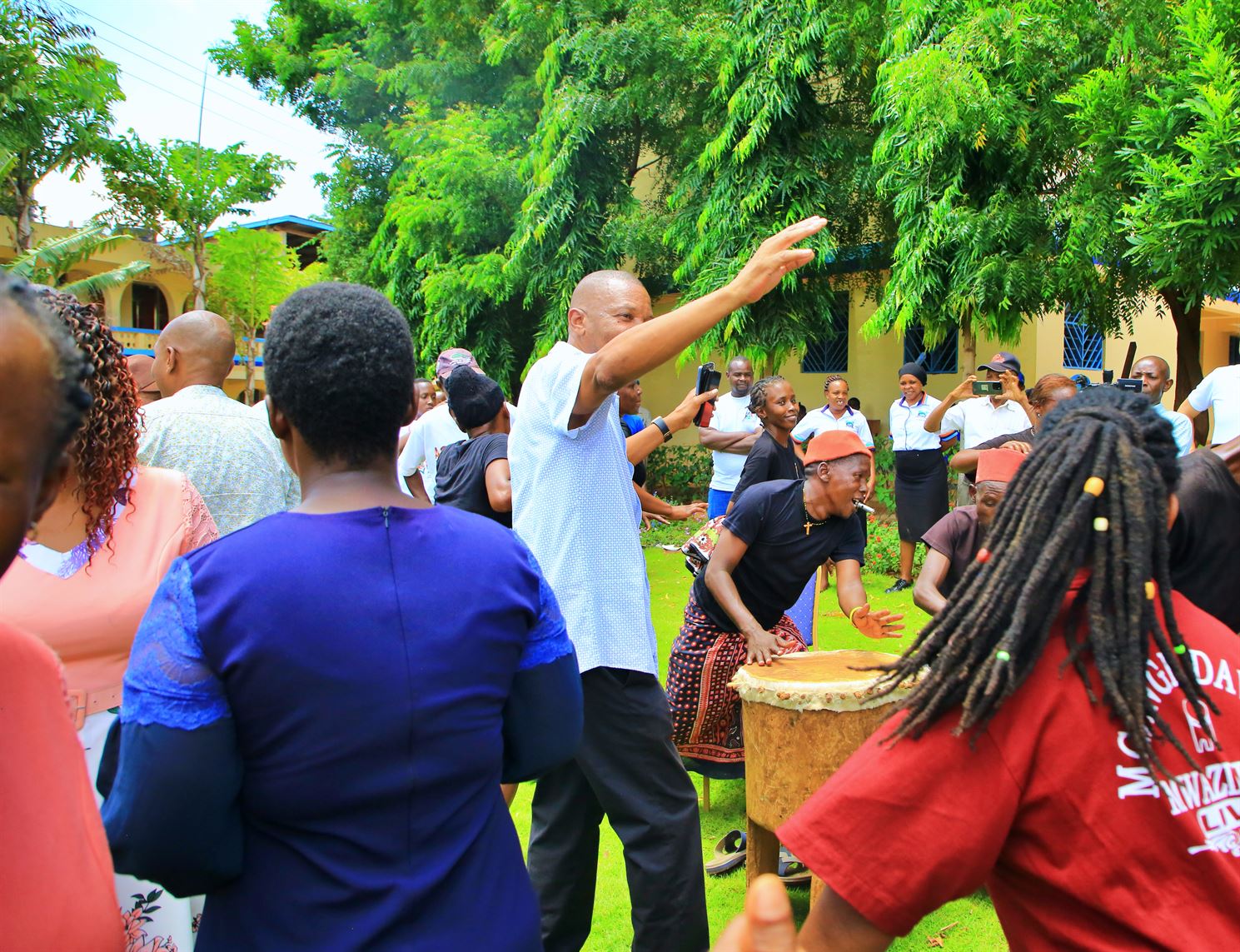 Title EN: Taita Taveta County Governor, HE Andrew Mwadime (raising hand), joins in a Mwazindika performance