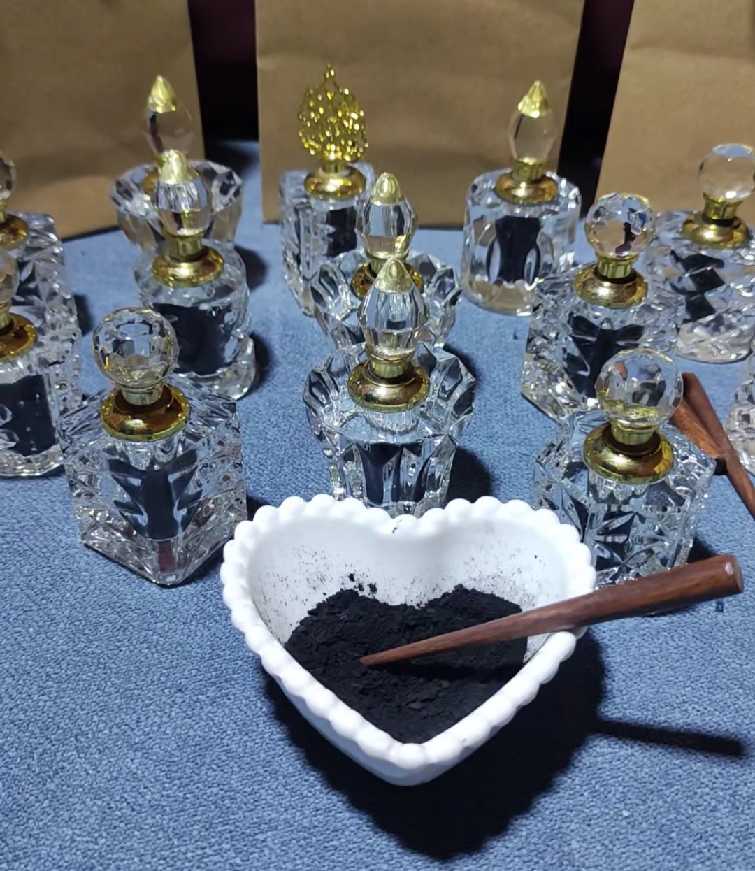 Title EN: Arabic Kohl made from harmal is stored in glass Makhala(s) in Jordan