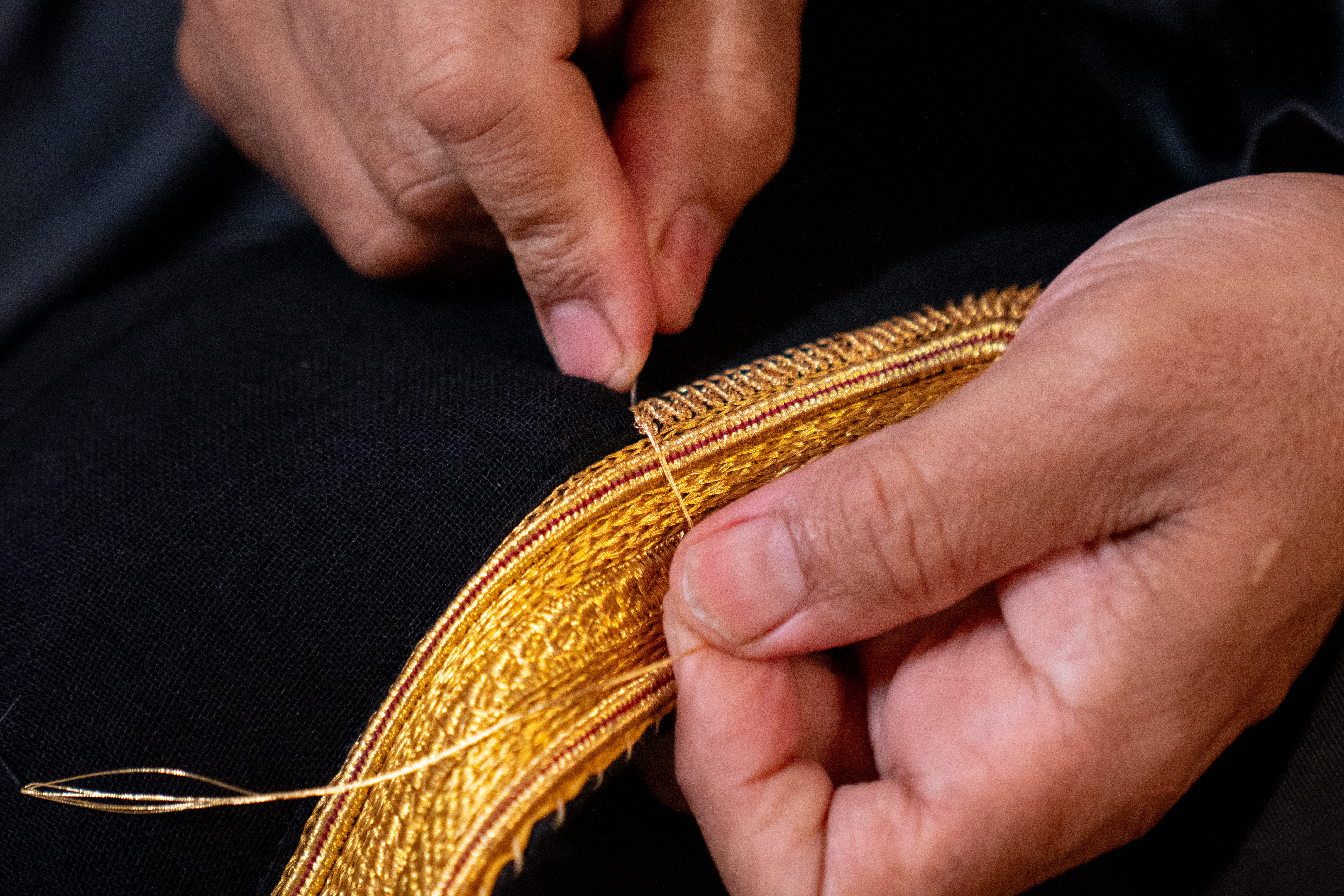 Título EN: "AlBurouj" embroidery on inner edge of "Al Bisht" in Alahsa province