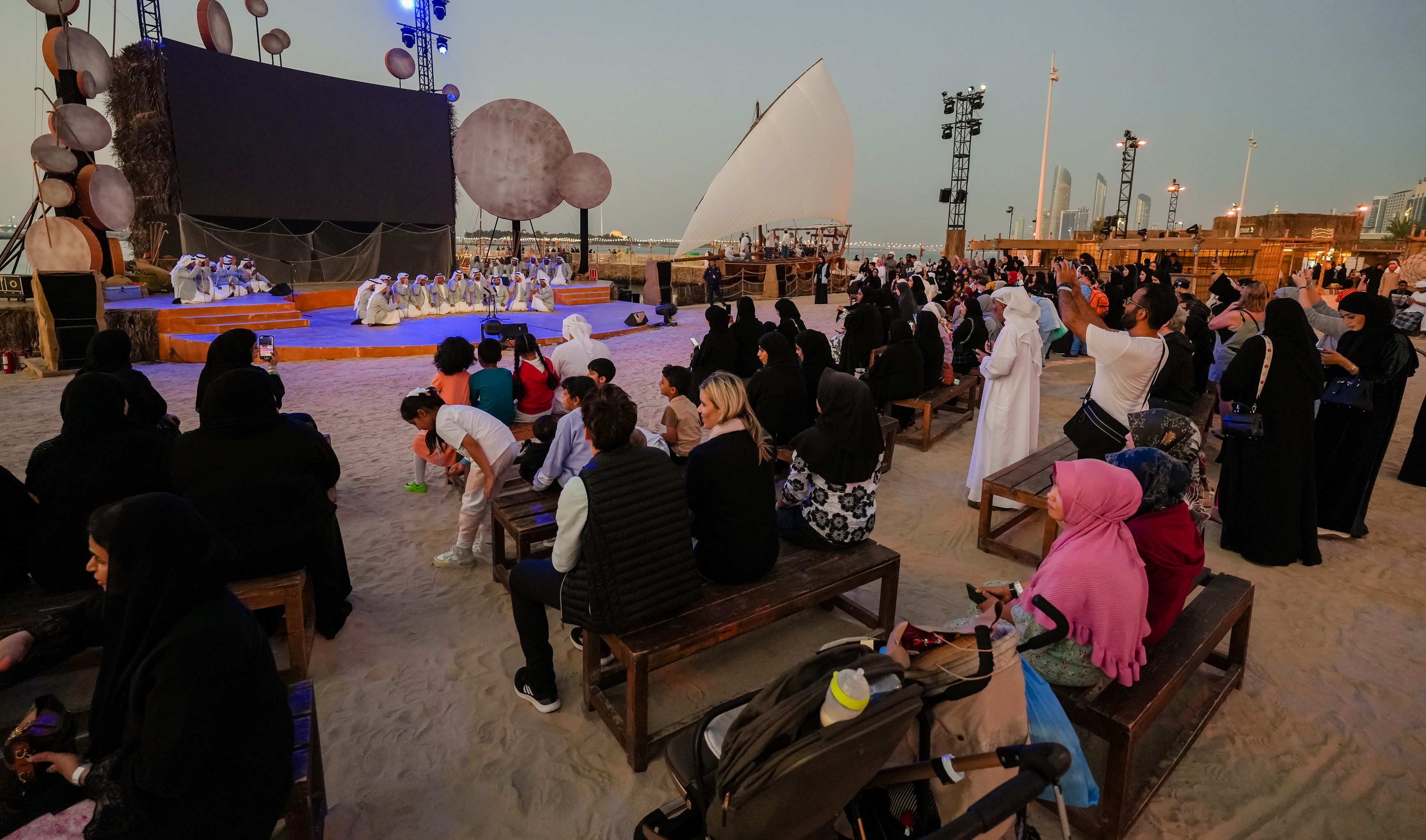 Titre EN : Am Ahalla performing art is showcased in front of an audience of varying ages.