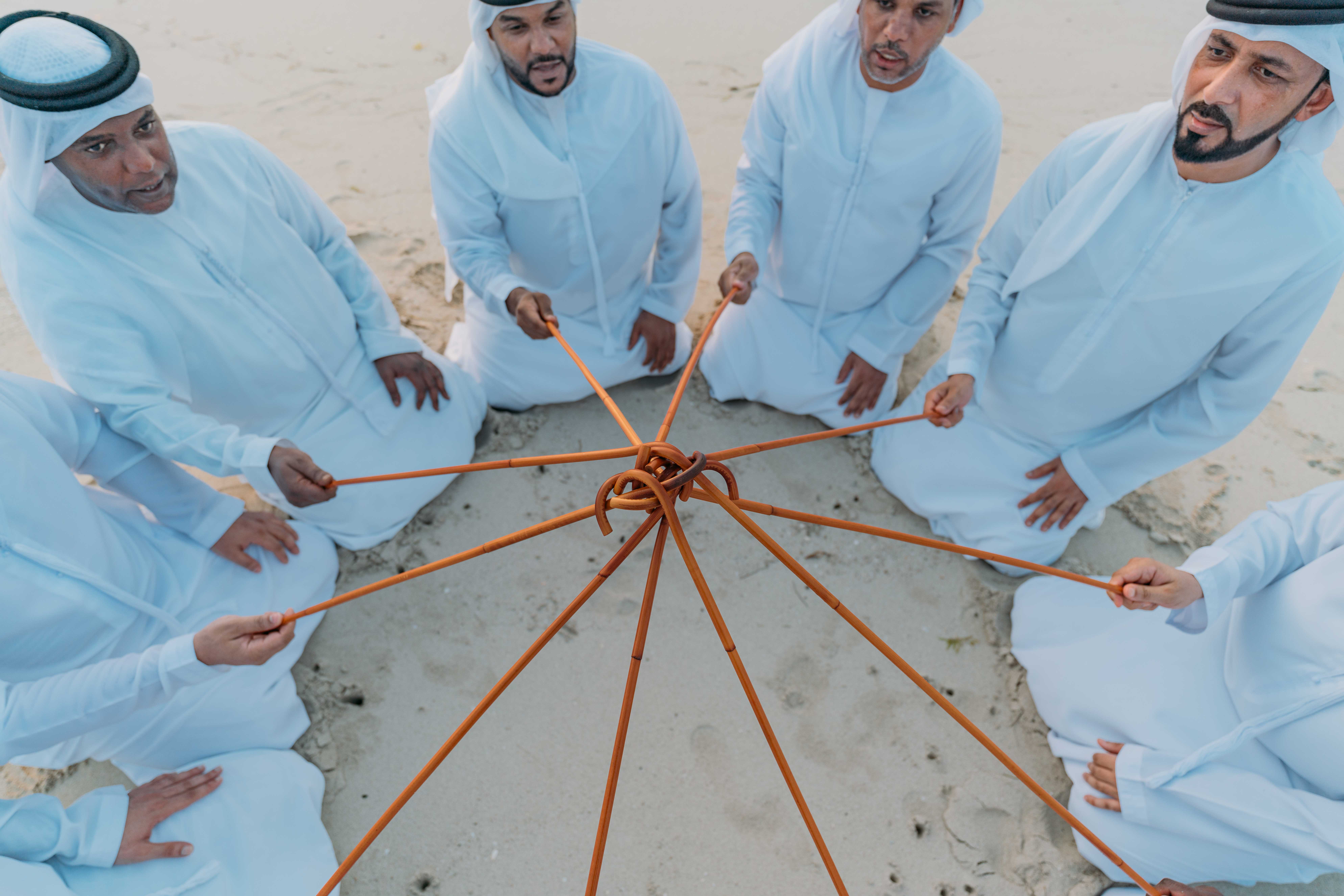 Titre EN : Performers intertwine sticks as a symbol of unity and solidarity.