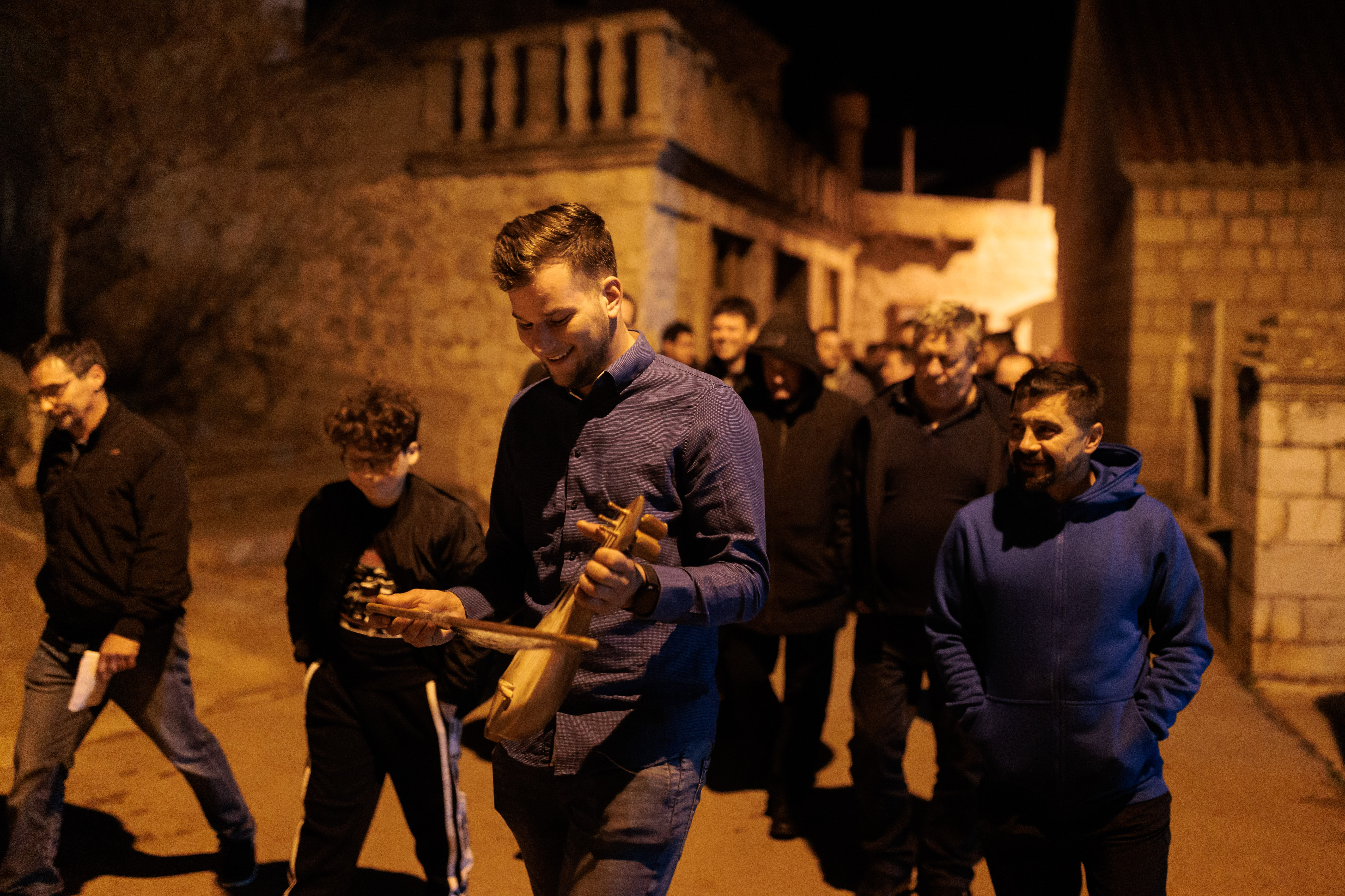 Titre EN : The first shouting the word “Uvooo” (“halekanje”) on Candlemass Day (“Kandalora”) accompanied by the lyre (“lijerica”)