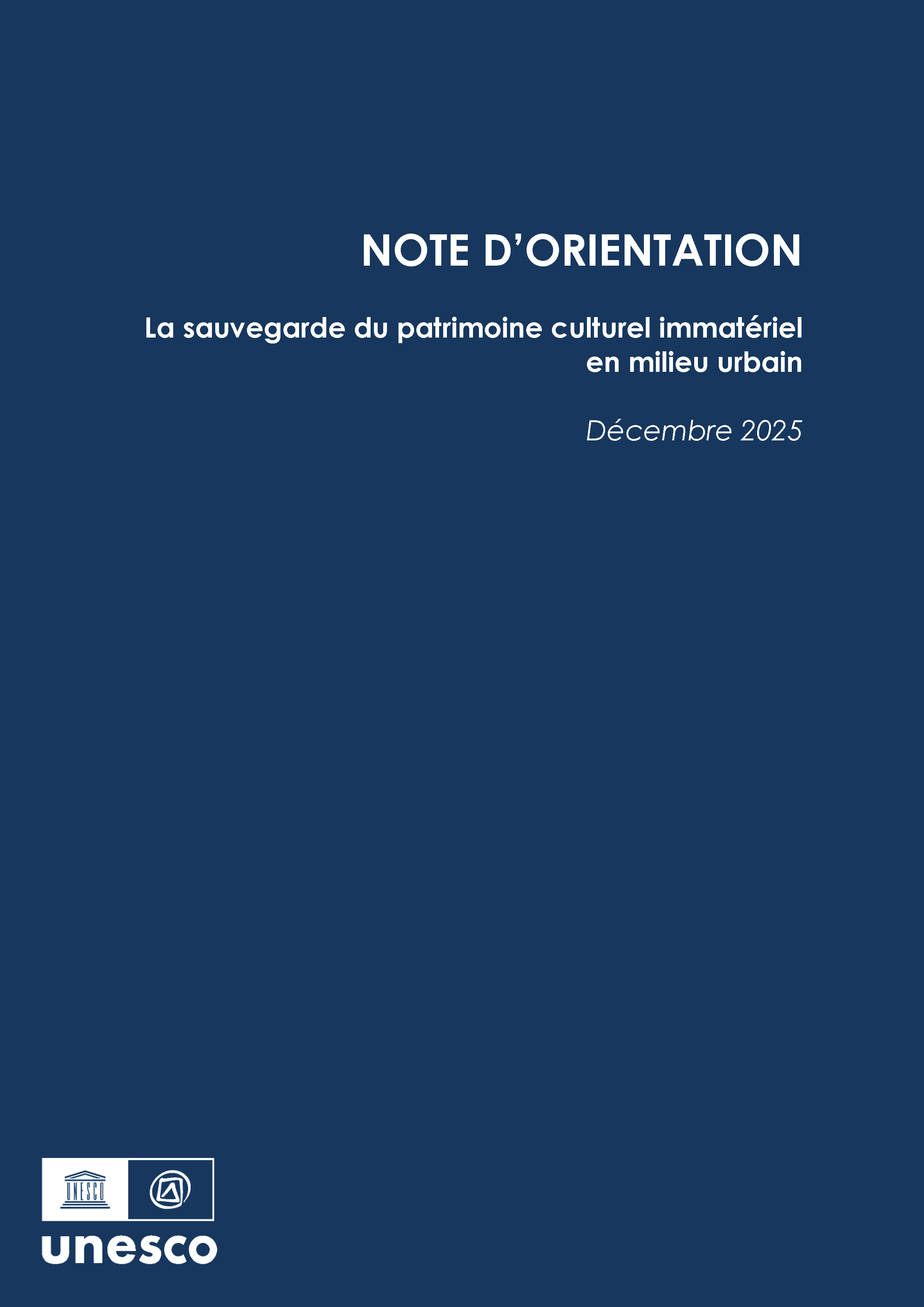 Titre tel que soumis EN : NOTE D’ORIENTATION La sauvegarde du patrimoine culturel immatériel en milieu urbain - couv