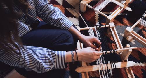 Le tissage traditionnel Al Sadu désigne un textile tissé par les femmes bédouines à l’aide d’un métier à terre. Les tisserandes utilisent des fibres naturelles trouvées dans leur environnement pour fabriquer un textile solide au tissage serré. Les motifs du tissage Al Sadu reflètent l’environnement désertique dans sa forme simple et pure, avec des dessins géométriques combinés pour s’écouler dans la répétition rythmique et la symétrie. Les tisserandes utilisent aussi des couleurs vives comme les tons de rouge et d’orange pour égayer leur environnement. La beauté de chaque article tissé repose sur la qualité du filage et du tissage et l’expertise de la tisserande - plus le fil est fin, plus la structure et le motif sont prononcés et délicats.